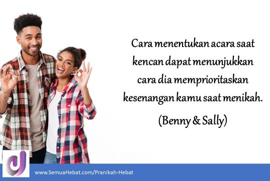 Cara menentukan acara saat kencan dapat menunjukkan cara dia memprioritaskan kesenangan kamu saat menikah. (Benny & Sally)