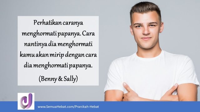 Home Kutipan Pranikah K-Pra Untuk Pria Perhatikan caranya menghormati papanya. Cara nantinya dia menghormati kamu akan mirip dengan... Kutipan PranikahK-Pra Untuk PriaPranikah Perhatikan caranya menghormati papanya. Cara nantinya dia menghormati kamu akan mirip dengan cara dia menghormati papanya. (Benny & Sally) By Tim Pranikah Hebat - December 11, 2020 369 0 SHARE Facebook Twitter